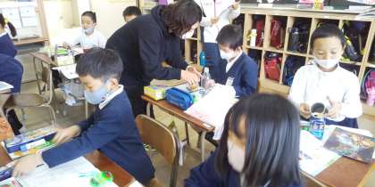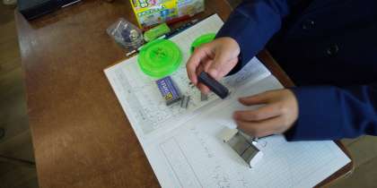 じしゃくの学習をしています。じしゃくにつくものが何か身近なもので試しました。最初につくものは〇、つかないものは×とノートの表に予想しました。その後、実際に家から持ってきたものや学校にあるものを選んで試していきました。この前学習した電気を通すものと比べて金属はつくと予想している人が多かったです。さあ結果は?また、金属でも塗料が塗ってあるものは電気を通さなかったけどじしゃくはつくのかも考えて試していました。次の時間、じしゃくがつくものは何か結果からまとめていきます。