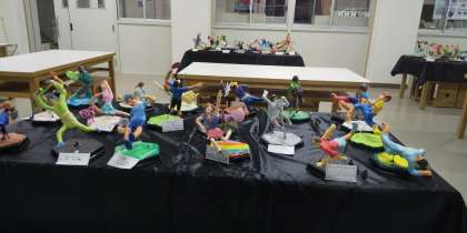 個人懇談会の間、図工室に6年生の粘土作品を展示していました。1学期に将来なりたい自分を絵にかきました。それを今度は立体で表しました。とても動きのあるダイナミックな作品に仕上がっています。