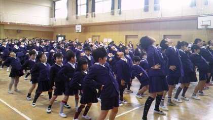 音楽に合わせて1年生から6年生までが手と手を合わせます。
