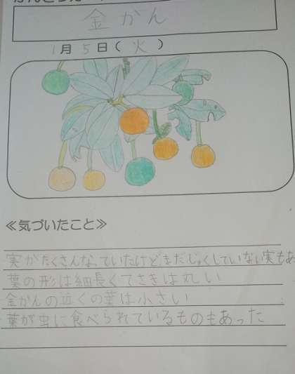 冬休みの宿題で取り組んだみんなが見つけた冬の植物について紹介し合いました。4枚もやってきた人もいるそうです。周りの自然に目を向けてどんどん自分で観察したり、調べたりしていくといいですね。自主学習ノート楽しみにしています。