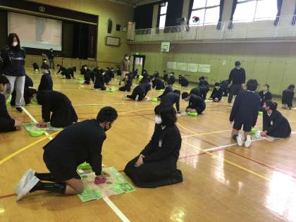 5年生は、日本赤十字の方に来ていただき、応急手当の仕方のついて学習しました。6年生は、消防署の方にAEDの使い方と救急救命法について教えていただき、みんなで実技学習もしました。