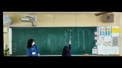 文の見直し方を学習しました。文のはじまりは1字下げて書くことに気づき発表しているところです。