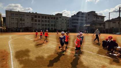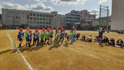 2年生は、2班に分かれ、密にならないように1組・2組のスタート位置を変えて行いました。ペアの友だちが1周走ったら、カードにチェックを入れます。「〇〇さん、後2周頑張って!」と応援の声がたくさん聞かれました。