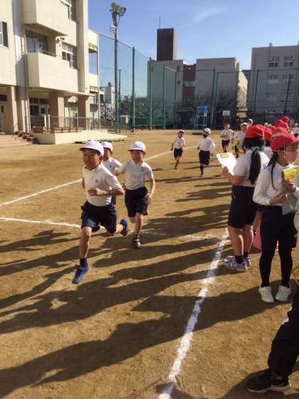2月25日、3年生のランニングフェスティバルを校内で行いました。3年生は、10周を2セット走って、合計タイムを出しました。目標タイムで走るチームを決めて1・2組スタート位置も変えて行いました。どの子も自分の目標に合わせて自分の力を出し切って最後まで走ることができました。
