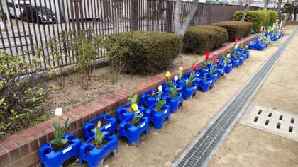 子どもたちが来なくなった校庭ですが、花はたくさん咲いています。1年生が育てているチューリップも咲き始めました。桜はもうすぐ満開になりそうです。入学式まできれいに咲いているといいのですが・・・。