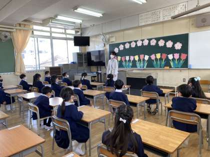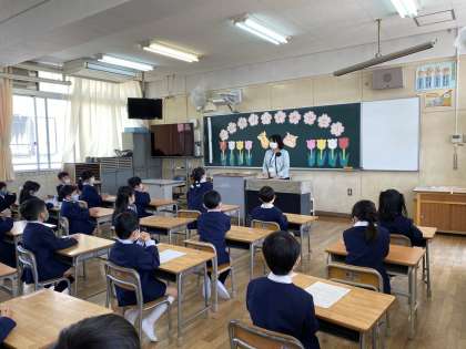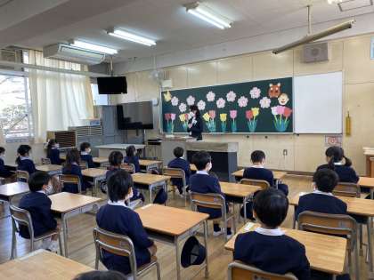 式が終わって、教室に入ると少しほっとしたようでした。一人ずつ担任の先生から自分の名前を呼ばれて元気に「はい!」と答えていました。担任の先生の名前も覚えられたようです。