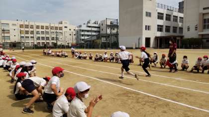 今日は、学年で50m走をしました。しっかり腕を振って走り切っていました。