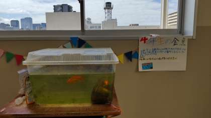 4年生は、1年生から金魚を育てています。生き物係さんが今年も2クラス合同で育ててくれることになりました。