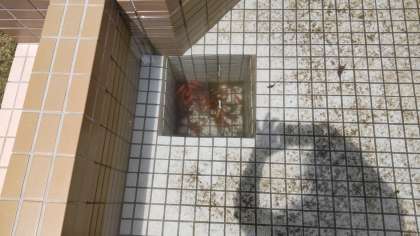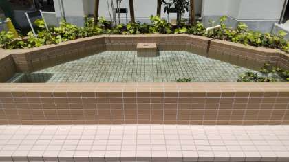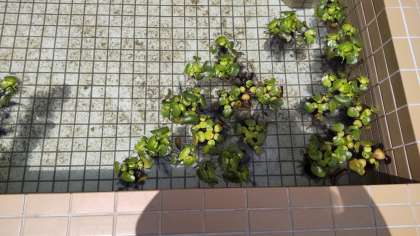 校舎の建て替えに伴って、池も新しくなりました。池の周りを芝生にして、池には水草と金魚を入れました。大きく育つといいですね。