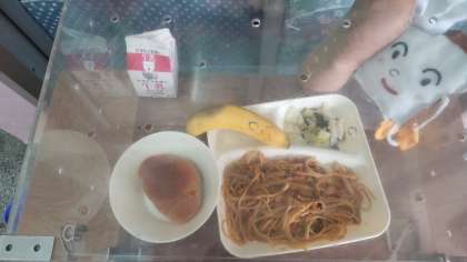 今日の給食は、カレースパゲッティ、ひじきとキャベツのサラダ、バナナです。「2年生は、給食で初めてバナナが出たよ」と嬉しそうに話してくれました。昨年度は、休校中で給食に出なかったのかなあと職員室で話していました。1年生も食べる量が増えてきて、学校全体では、ほとんど残食はありません。もりもり食べてみんな元気で過ごせますように。