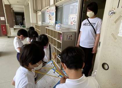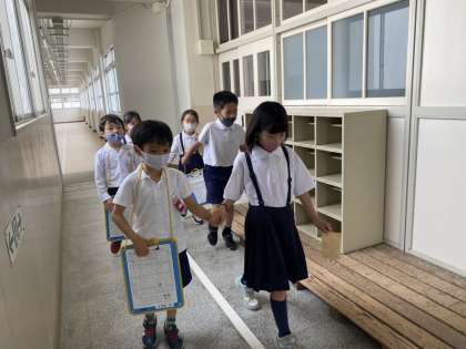 1年生と2年生でグループになって学校たんけんをしました。2年生はそれぞれ何をする部屋か説明しました。お兄ちゃんお姉ちゃんになって一生懸命1年生をリードしている姿は頼もしかったです。