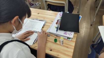 それぞれのコースで、線対称の図形の描き方を学習しました。どうやったらうまく描けるか考えてみんなで確かめました。