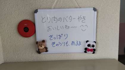 今日の給食は、鶏肉のしょうゆバター焼 こまつなのみそ汁 きゅうりのあえものでした。具だくさんのみそ汁に、バターのこくが効いた鶏肉は焼き物機でやわらかく焼きあがっていました。