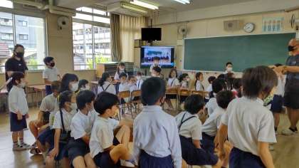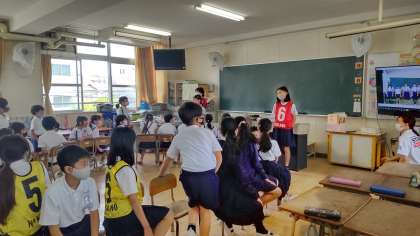 今日のたてわり集会は、それぞれの教室でいすとりゲームをしました。集会委員の人が動画で説明をしたり音楽をかけたりしました。いすを25個にして座れなかった人の名前をみんなで呼ぶゲームです。みんなの名前覚えてたかな?