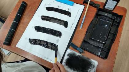 一という漢字を練習しました。始筆と終筆に気を付けて丁寧に書きました。