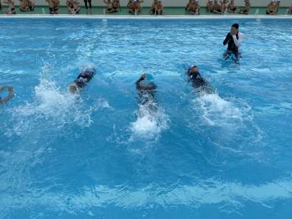先週の金曜日、千葉すずさんが水泳を教えに来てくださいました。来てくださると決まったのに、雨が降ったりやんだりで子どもたちは、てるてるぼうずを作って雨が上がることを祈っていました。願いが叶ってクロールの泳ぎ方、息継ぎの仕方を教えてもらいました。千葉さんのお話は面白く素直に練習した子どもの中には、け伸びしかできなかったのに1時間で面かぶりクロールが10メートル泳げるようになった子もいました。中野小学校の子どもたちは全学年指導していただき、どの子も楽しく練習しながら「楽に泳げるようになった」という声がたくさん聞かれるようになりました。千葉さんにお礼の手紙を書いた学年もあり、「来年もまた、教えに来てください!」とお願いしてる子もいました。上手になった自分を見てほしいそうです。