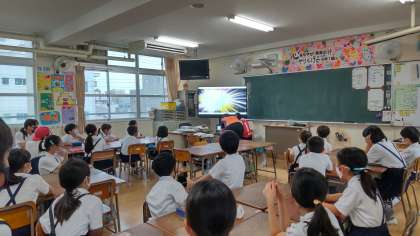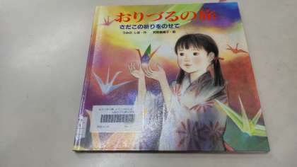 今日は、平和学習の一環として、図書館補助員の川田さんに全校読み聞かせをしていただきました。「おりづるのたび」という絵本です。2歳の時に被爆して12歳で白血病を発症して亡くなった佐々木貞子さんのお話です。教室の大型テレビで挿絵や広島の平和記念公園の中の写真などを交えてお話してくださいました。貞子さんが亡くなった後、貞子さんの友だちが呼びかけて全国の3000校を超える学校から手紙と募金が送られてきて貞子さんが亡くなってから2年後にすべての原爆でなくなったみんなのためにと「原爆の子の像」が建てられたそうです。