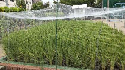 田んぼの稲がたくさん実り始めました。すずめに食べられないようにしっかりネットもはっていただきました。中野米を収穫するのが楽しみですね。