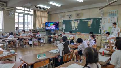 国語の学習の中で学級会で「学校のことを紹介しよう」という単元があります。それを発展して「新しい1年生に紹介すること」という議題で話し合いました。お家からもTeamsで参加している子もいます。