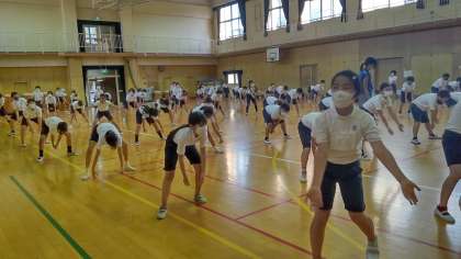 5年生は、南中ソーランをします。深く腰を下ろすのがしんどいですが、みんな頑張っています。