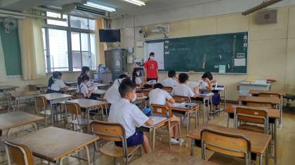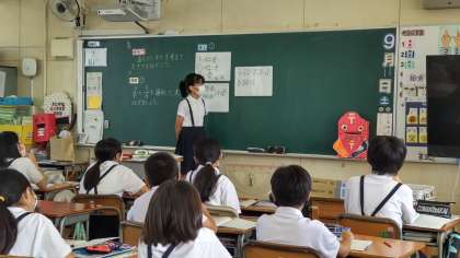 分数の大きさを比べるにはどうしたらよいか話し合いました。分母が違うと比べられないので、分母を等しくして比べる見通しを立てて考えました。自分の考えを発表ボードに書き発表しています。