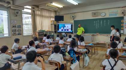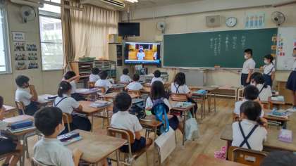 今日は、児童会から運動会のスローガンの紹介がありました。「2021 心で伝えろ 笑顔の輪 みんなでつかむ 金メダル ゲットだぜ!」です。大きな声で応援はできないけれど、「こころ」で大きな声を出し、勝ち負けにこだわらず、みんなで頑張った思い出が金メダルになり自分だけの金メダルをゲットしようという気持ちが込められています。応援団長の決意表明と応援団の意気込みを動画で見ました。赤組・白組心を一つにしてみんなで盛り上げましょう。