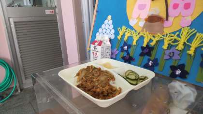 今日の給食は、大豆入りのキーマカレーライス、きゅうりのピクルス、白桃(缶詰)です。今日は、中秋の名月、満月です。見れるといいですね。