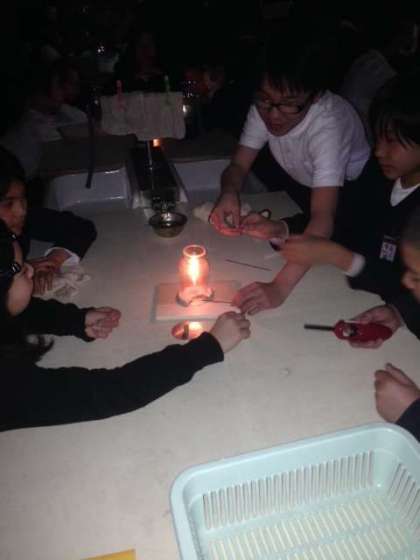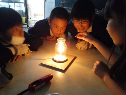 6年生の「ものの燃え方と空気の動き」の実験です。