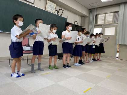 2年生生活科のまちたんけんの発表会がありました。チームに分かれて、身近な街の施設について調べました。施設の方からいただいた質問のお返事をもとに、分かったことを発表しました。