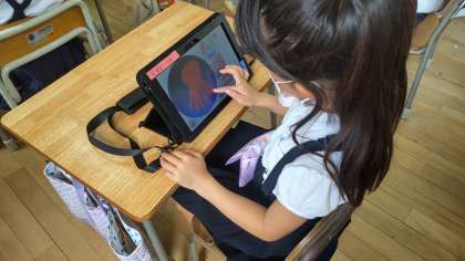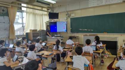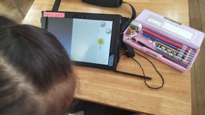 タブレットでプログラミング学習をしました。ビスケットというソフトを使って絵を描いて、その絵を動かしました。子どもたちは、動かせることが驚きだったようです。自分の描いた絵が動くのを楽しんでいました。