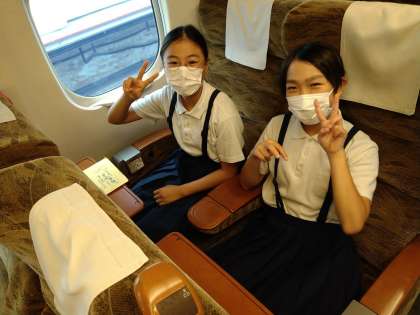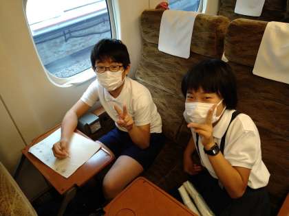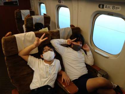 新幹線の中、みんな楽しんでます。
