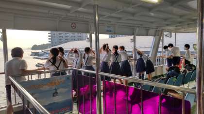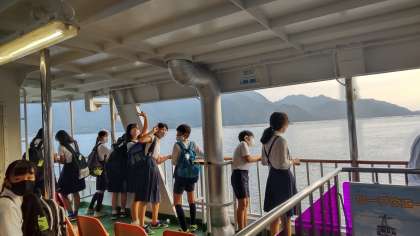 フェリーに乗って宮島に渡りました。風がすごく気持ちよかったです。