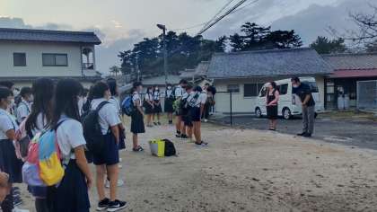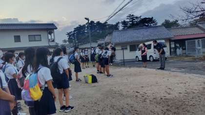 開舎式です。宿の方にお世話になること、しっかり体を休めで明日の行動に生かすことなどあいさつをしっかりすることができました。