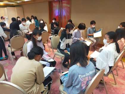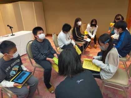 よく眠れなかった子もいたようですが、みんながん期に朝の集いに参加しました。昨日遅くなったので挙げれなかった学習会とリーダー会議の様子を載せます。岩田さんに来ていただいて千鶴子さんの被爆体験を家族を視点にして分かりやすく教えていただきました。さいごにみんなと記念撮影をしていただきました。