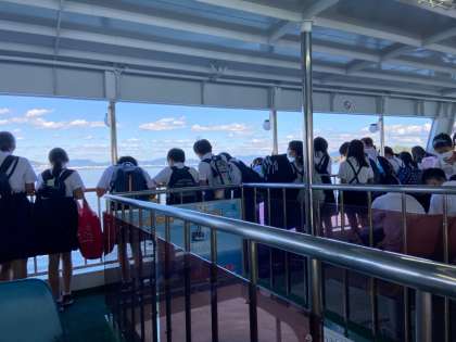 海辺と帰りのフェリーの様子です。本当によい天気でした。