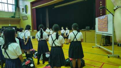 帰校式です。昨日17時過ぎに6年生は、広島方面の修学旅行から帰ってきました。学校の入り口では中野のマスコットキャラクターKIZUNAちゃんや保護者の皆様、教職員の出迎えがあり子どもたちもホッとした笑顔でした。
