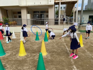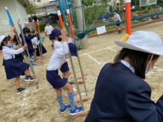 運動委員会の児童は、それぞれコーナーで、やり方の説明をしてくれています。