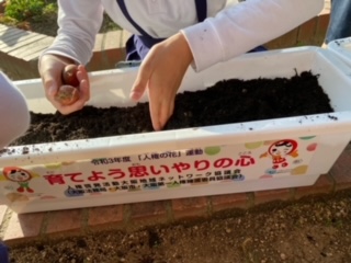 栽培委員会で人権の花運動でいただいた、「チューリップ」を植えました。