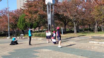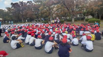 時計台で動画も撮りました。その後、もぐもぐ式お弁当とその後の班遊びの注意をしてお待ちかねの「いただきます」