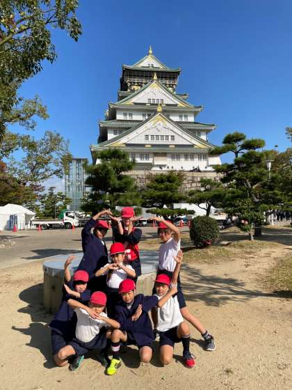天守閣では班ごとにポーズを決めて、写真を撮りました。どこの班がどんな賞を今年はゲットするのでしょうか?