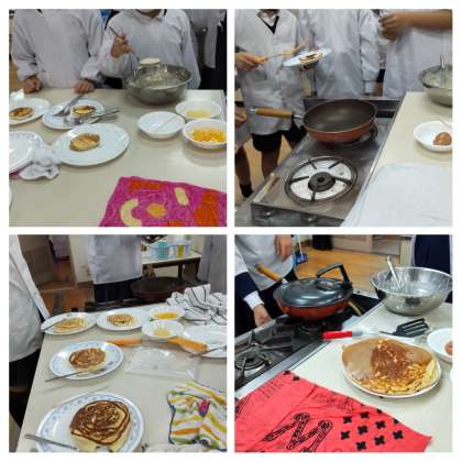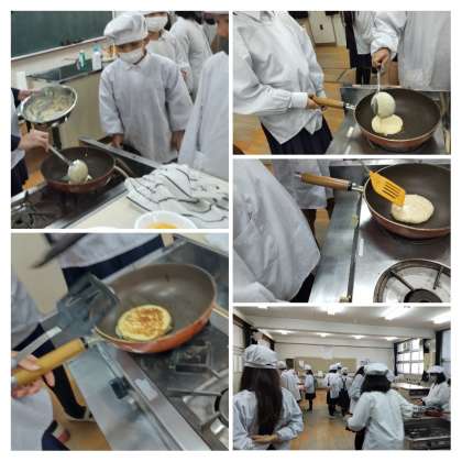 ホームメイキングクラブは、ホットケーキを作りました。一人ずつ小さいのを作る班もあれば、大きいのを一つ作って切り分けた班もありました。