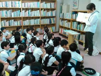 楽しい読み聞かせをしていただき、子どもたちは手を挙げて参加しました。