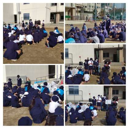 学校にたくさんのゴミの袋が集まりました。それぞれの場所で、地域の方と一緒にきれいにすることができました。また、保護者の皆様も参加していただきありがとうございました。閉会式では、みんなで中野の町をきれいにできた達成感で笑顔いっぱいでした。インタビューされた人からは「きれいにできて嬉しかった」「地域の人とお話できてよかった」等の感想が聞かれました。環境委員の人が「これからもみんなで学校もきれいにしていきましょう。来年もやりましょう」と締めくくってくれました。よいお天気の中全校で取り組めて町がきれいになってよかったです。