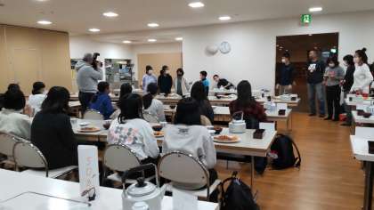 餅つきが終わったらキャンプファイヤーの用意をして夕食です。容器ごとに班で手分けして片付けます