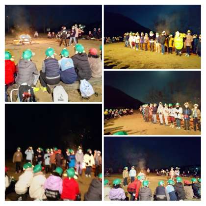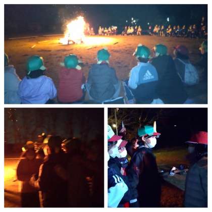 火の神、火の子どもたちの点火でキャンプファイヤーが始まりました。じゃんけん列車の後、1組のスタンツミュージカルです。歌や踊りがたくさーん。