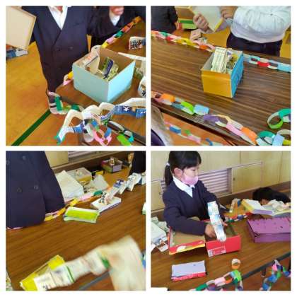 最後は「びっくり箱」「ぴょんうさぎ」です。輪ゴムを使っています。時間いっぱい遊びました。2年生のお兄さんお姉さん今日はありがとう。