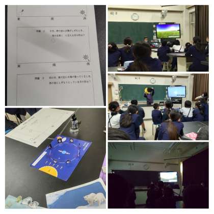 今日は、太陽と月の動きの学習にゲストティーチャーとして、前校長先生の筒井先生が来てくださいました。ステラリウムという星や月、太陽の動きを学習するアプリを使って学習しました。時間を早めて、そらを見れるようにしたり、金星や木星など望遠鏡で見たように拡大したりして空の様子を確かめました。日食の起こる様子も見ることができました。最後に太陽の位置によって月がどのように見えるか教科書についている教材を使って考えました。そしてステラリウムでも確かめました。懐かしい優しい筒井先生のお話をしっかり聞いて考えることができました。6年生のためにありがとうございました。