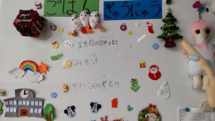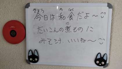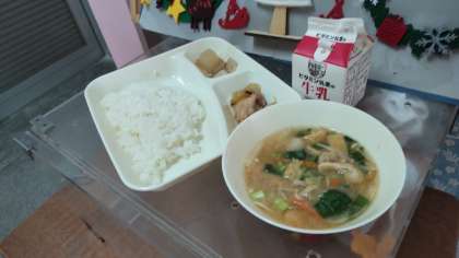 今日の給食は、鶏肉の甘辛焼き、みそ汁、だいこんの煮物でした。だいこんが柔らかく味がしっかりしゅんでおいしかったです。