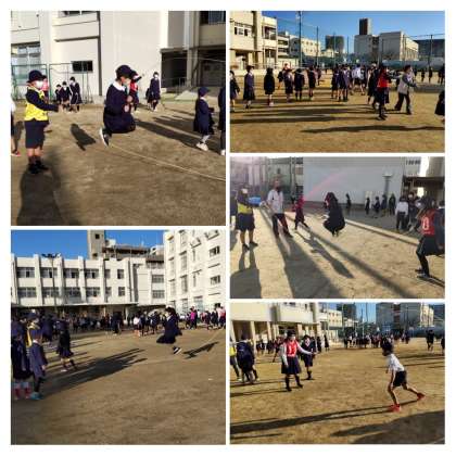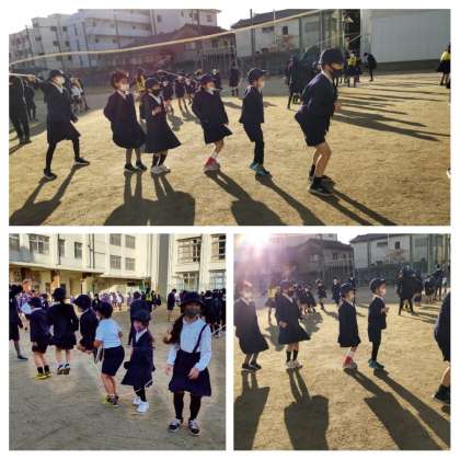 今日の集会は先週クラスで頑張った大なわをたてわり班で行いました。1回戦は、8の字です。2回戦は、A・B分かれてみんなでジャンプしました。声をかけ合って、16回引っかからずに跳べた班もありました。みんなで気持ちを一つにできたかな?