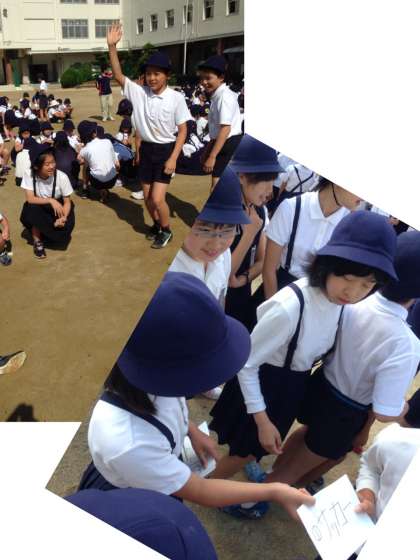 お題は、「サッカー」「タコ」「シンバル」でした。 ジェスチャーを出してくれるのは、班長・副班長。 つまり、6年生です。 最後の「シンバル」は、5年生がしてくれましたよ。